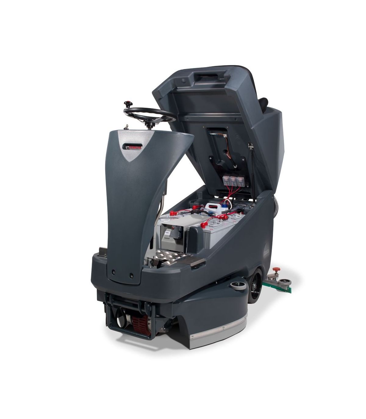 Profesjonalny automat czyszcząco-zbierający, przeznaczony do czyszczenia powierzchni twardych (tarket, kamień, gres itp.). Urządzenie posiada solidną ramę nośną malowaną proszkowo, zbiorniki wykonane z odpornego na uderzenia tworzywa Structufoam®, napęd na przednie koło, łatwy dostęp do wszystkich podzespołów oraz rozsuwane osłony boczne ułatwiające montaż szczotek. Maszyna przeznaczona jest do codziennego zmywania posadzek twardych. Jednocześnie zmywa i osusza powierzchnie. Doskonale nadaje się do czyszczenia dużych wielkościowo powierzchni. Komfort pracy zwiększa wygodne napełnianie wodą czystą otworem umieszczonym na niewielkiej wysokości, szybkie wylewanie wody poprzez duże węże spustowe, wbudowany dozownik chemii (0%,1%,1,5%,2%,4%) regulowana szerokość pracy (650-700-750-800-850mm), łatwość utrzymania maszyny w czystości, zespół baterii podzielony na 32kg segmenty, oraz zintegrowana ładowarka.