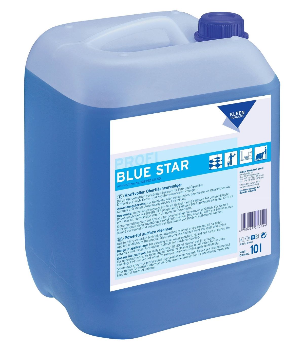 Blue Star uniwersalny środek przeznaczony do bieżącego mycia i czyszczenia wszelkich podłóg i powierzchni odpornych na działanie wody takich jak; wykładziny PCV, linoleum, płytki podłogowe, gres, marmur, lastryko, parkiety drewniane, drewno, guma, wykładziny sportowe, klinkier czy korek. Świetnie sprawdzi się jako uniwersalny produkt w codziennym utrzymaniu czystości okien, mebli, elementów plastikowych, metalowych oraz drewnianych i laminowanych. Bardzo uniwersalny i skuteczny dzięki czemu Blue Star znajdzie zastosowanie w domu, przemyśle hotelowym, gastronomicznym i innych miejscach o dużym zróżnicowaniu typów powierzchni. Polecany do bieżącej pielęgnacji podłóg często uczęszczanych oraz zabezpieczonych powłokami ochronnymi. Środek jest dopuszczony do mycia powierzchni mających kontakt z żywnością. Może być stosowany w branży HORECA oraz jako środek czyszczący maszyny oraz linie produkcyjne w branży przetwórstwa spożywczego.