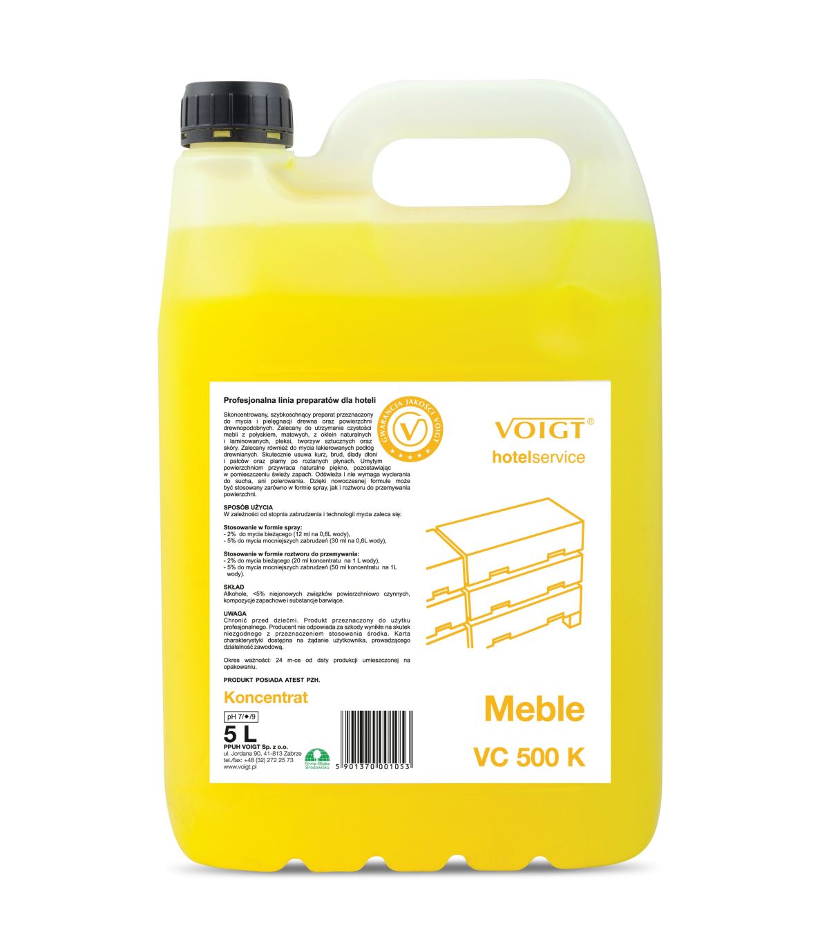 Voigt H501 Hotel Uni MEBLE 5L Uniwersalny koncentrat do mycia i pielęgnacji mebli skóry tworzyw sztucznych VC500K
