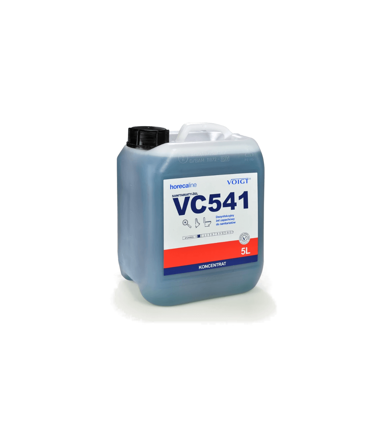 VC541 to preparat z profesjonalnej linii HORECA marki VOIGT przygotowany specjalnie do profesjonalnego użytku w branżach gastronomicznych i hotelarskich. Produkt VC 541 SANITARIATY-ŻEL to gotowy do użycia preparat w formie żelu przeznaczony do mycia i dezynfekcji urządzeń sanitarnych, takich jak płytki ścienne, pisuary, bidety czy muszle klozetowe.