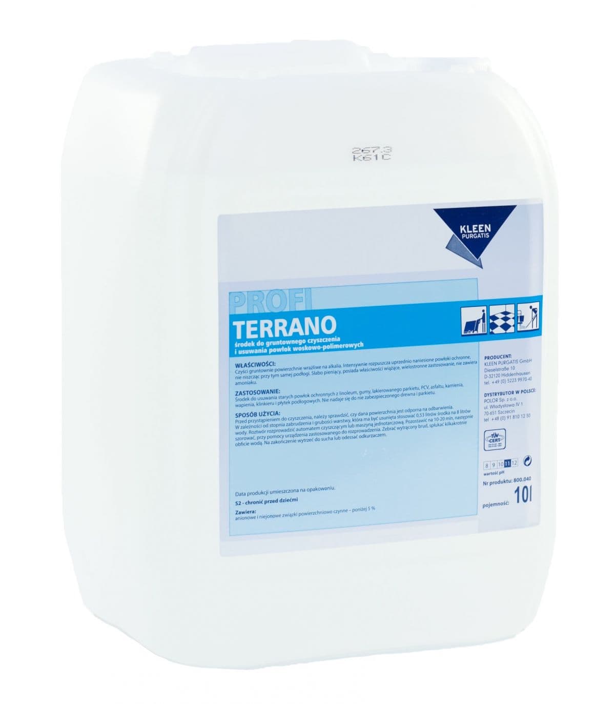 TERRANO niemieckiej marki KLEEN to bezpieczny w użyciu i skuteczny środek do doczyszczania bardzo zabrudzonych powierzchni wrażliwych na działanie silnych alkalicznych preparatów. Usuwa stary nawarstwiony brud, akrylowe, polimerowe oraz woskowe powłoki zabezpieczające. Stripper szczególnie polecany do doczyszczania powierzchni wrażliwych takich jak kauczuk, linoleum, kamień naturalny czy parkiet lakierowany.