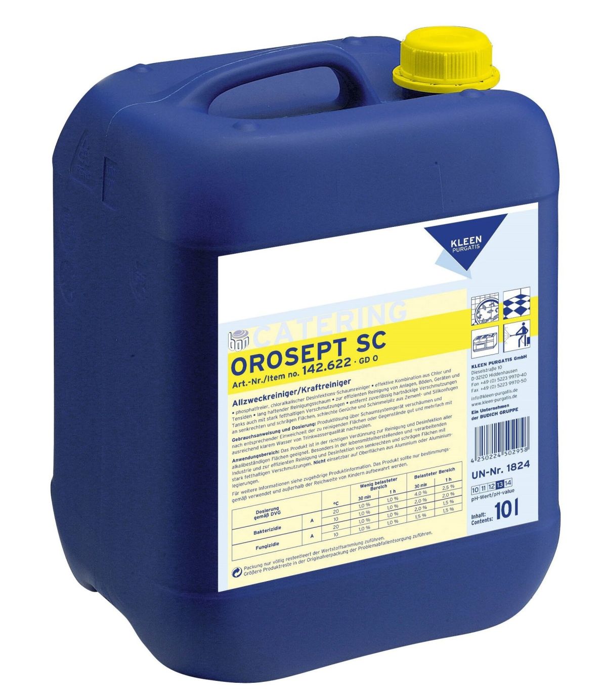 OROSEPT SC niemieckiej marki KLEEN to skoncentrowany, chlorowy środek do doczyszczania obszarów zawilgoconych. Dzięki aktywnej pianie z łatwością utrzymuje się na powierzchniach pianowych. Usuwa naloty grzybicze z fug cementowych oraz silikonowych. Z łatwością radzi sobie z zanieczyszczeniami pochodzenia tłuszczowego. Neutralizuje przykre zapachy. STĘZENIE ROBOCZE 4% 40ML. NA 1L. WODY