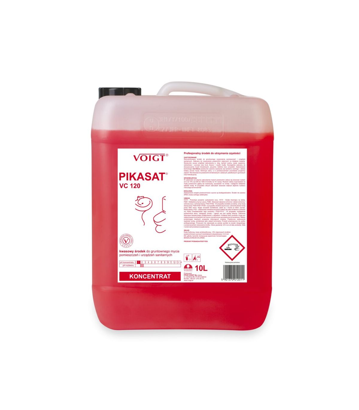 PIKASAT VOIGT VC120 to silny środek do usuwania kamienia, rdzy, osadów z mydła i zabrudzeń wapiennych. Nadaje się do czyszczenia łazienek, toalet, armatury, płytek, fug i kabin prysznicowych. To główny wariant PIKASAT do gruntownego doczyszczania.
