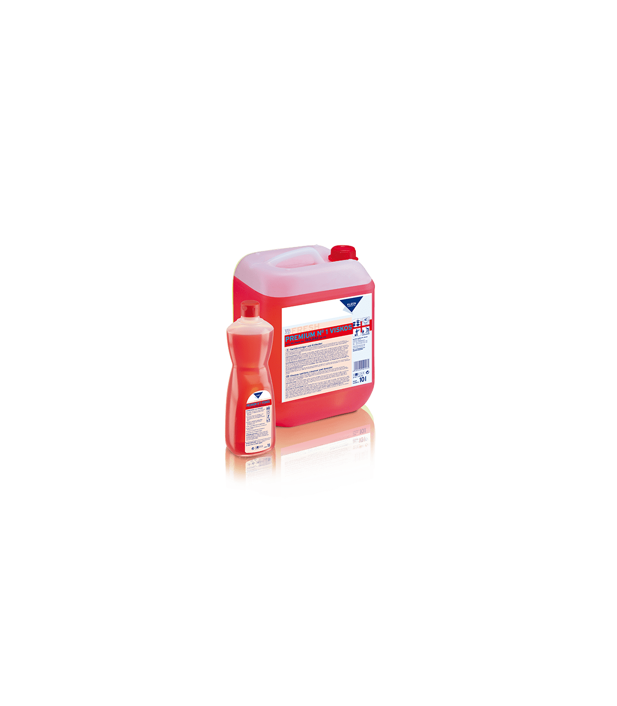 PREMIUM NR 1 VISKOS to kwaśny, uniwersalny i gęsty środek o podwyższonej lepkości. W przypadku usuwania dużych zabrudzeń może być stosowany bezpośrednio na powierzchnie bez rozcieńczania. Dzięki wysokiej gęstości dociera w miejsca trudno dostępne, dłużej utrzymuje się i ułatwia proces mycia powierzchni ukośnych i pionowych, takich jak brodziki kabiny i szyby prysznicowe czy umywalki, wanny, bidety oraz WC. Preparat można rozcieńczyć z wodą w odpowiednim stężeniu, przygotowany środek używać do bieżącego mycia. W przypadku doczyszczania, rozprowadzić koncentrat lub roztwór po powierzchni, pozostawić na kilku minut, dokładnie przeszorować i spłukać wodą. Na elementach chromowanych takich jak krany nie pozostawiać dłużej niż 5 minut. Nie nadaje się do mycia marmuru, kamienia sztucznego, emalii nieodpowiadającej normom wg klasyfikacji DIN ISO 2722, uszkodzonych powierzchni chromowanych, niklowanych i ocynkowanych.