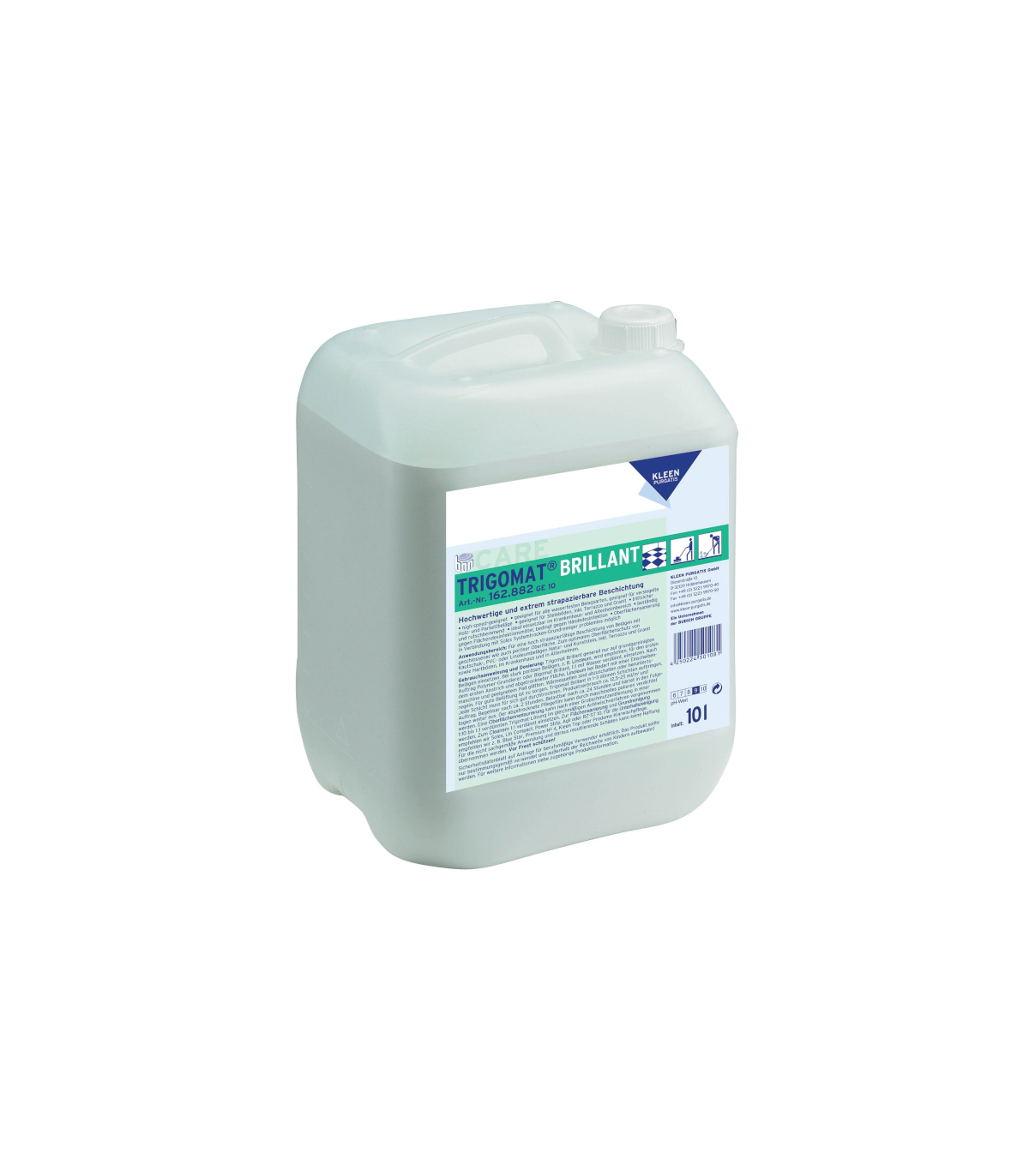 TRIGOMAT BRILLANT to najwyższej jakości elastyczna i bardzo trwała ochronna powłoka polimerowa niemieckiej marki KLEEN. Przeznaczona do nabłyszczania oraz zabezpieczania zarówno twardych jak i elastycznych podłóg i posadzek takich jak PCV, gumolit, zagruntowanego linoleum, lastryka, marmuru, lakierowanego parkietu czy posadzek żywicznych. Na zabezpieczonych posadzkach pozostawia trwały, jednolity połysk, tzw "efekt rozlanej wody". Wysoce odporny na ścieranie oraz działanie środków dezynfekcyjnych. Polecany do zabezpieczania podłóg w miejscach o bardzo wysokim stopniu uczęszczania tj. hotele, szkoły, szpitale, placówki służby zdrowia czy hale produkcyjne. Chroni rodzime podłoże, zabezpiecza przed szybkim przyjmowaniem brudu i znacząco ułatwia i przyspiesza proces bieżącego utrzymania czystości.