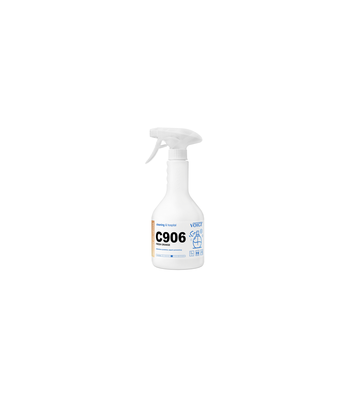 C 906 Fresh Orange /dawniej H534 / zapachy pomarańczy szybko i skutecznie odświeżają powietrze w pokojach, salach konferencyjnych, korytarzach, holach, toaletach i palarniach. Preparat zapachowy o dużej skuteczności i wydłużonym czasie działania. Dzięki rewolucyjnej formule, składniki zawarte w preparatach łączą się z zapachowymi molekułami i neutralizują ich działanie. W sanitariatach preparat rozpylać na ścianę za muszlą WC lub do pojemnika na szczotkę klozetową. W pozostałych przypadkach aplikować w rogach pomieszczenia (przy podłodze). W zależności od oczekiwanego rezultatu dezodorującego, wielkości pomieszczenia oraz stopnia wentylacji zaleca się od 1 do 5 rozpyleń. Częstotliwość stosowania: 1 raz na 6-12 godzin. Preparatu nie rozpylać „w powietrze”.