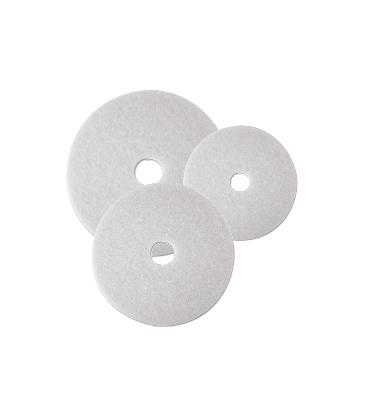 Pad do polerowania posadzek wykonanych z płytek ceramicznych, linoleum, PCV i tworzyw sztucznych, zabezpieczonych lub niezabezpieczonych polimerową powłoką ochronną. Świetnie sprawdzą się również do olejowania parkietów drewnianych oraz froterowania podłóg zabezpieczonych woskami, polimerami oraz olejem. Pad biały posiada bardzo dobre właściwości wyciągające brud, jest często wykorzystywany jako pad wspomagający podczas maszynowego odplamiania oraz prania wykładzin i dywanów