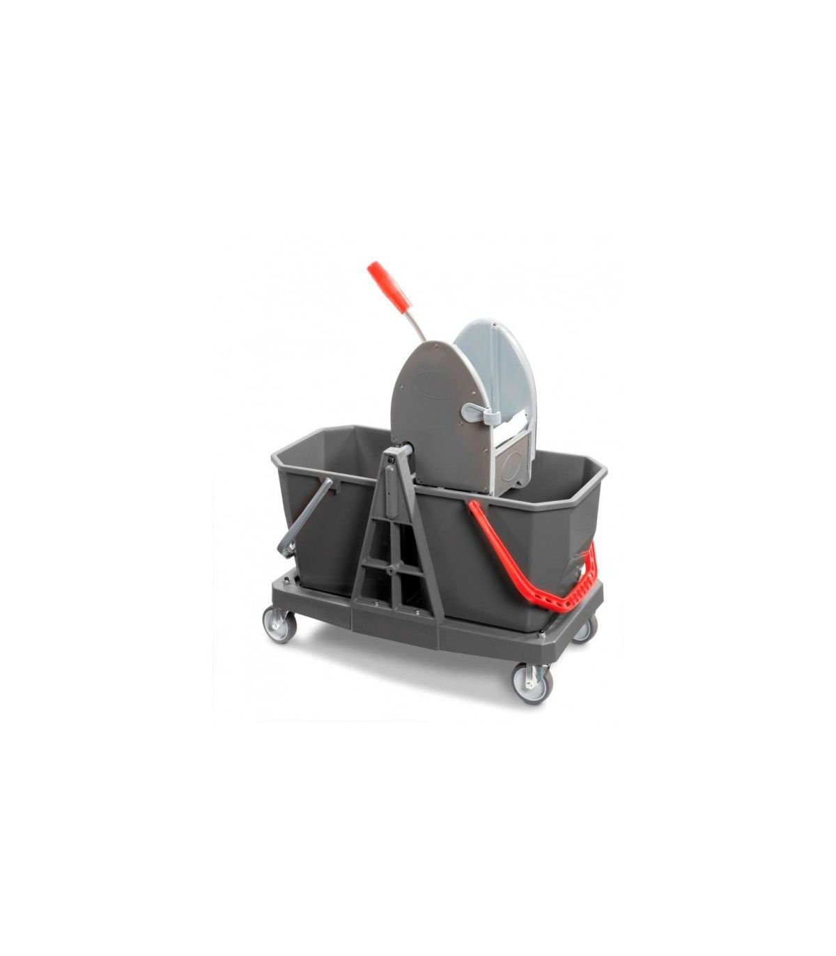Wysokiej jakości kompaktowy wózek wyposażony w uniwersalną wyciskarkę szczękową oraz dwa wiadra o pojemności 20 litrów. Przeznaczony do utrzymania czystości podłóg na średniej i małej wielkości obiektach.