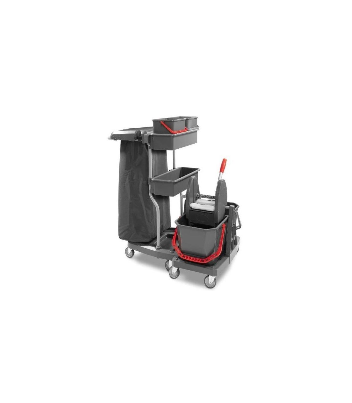 Nowoczesny i solidnie wykonany wózek serwisowy włoskiej marki VDM. Konstrukcja oparta o dwa odczepiane moduły mogące pracować osobno. Przeznaczony do kompleksowego utrzymania czystości podłóg i powierzchni na średniej i małej wielkości obiektach.
