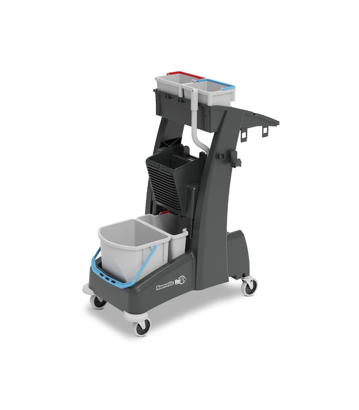 Rozbudowany i wielofunkcyjny wózek MM4 MultiMatic angielskiej marki NUMATIC przeznaczony jest do profesjonalnego mycia podłóg na małych powierzchniach np. w sklepach, szkołach, szpitalach, biurach czy domach. Wózek doskonale sprawdza się w niewielkich pomieszczeniach o ograniczonej dostępności np. w wąskich korytarzach, czy między szafkami szkolnymi. Pomysłowa, lekka konstrukcja i bogate wyposażenie czynią z tego modelu efektywne zaplecze sprzątające np. w budynkach bez wind.
