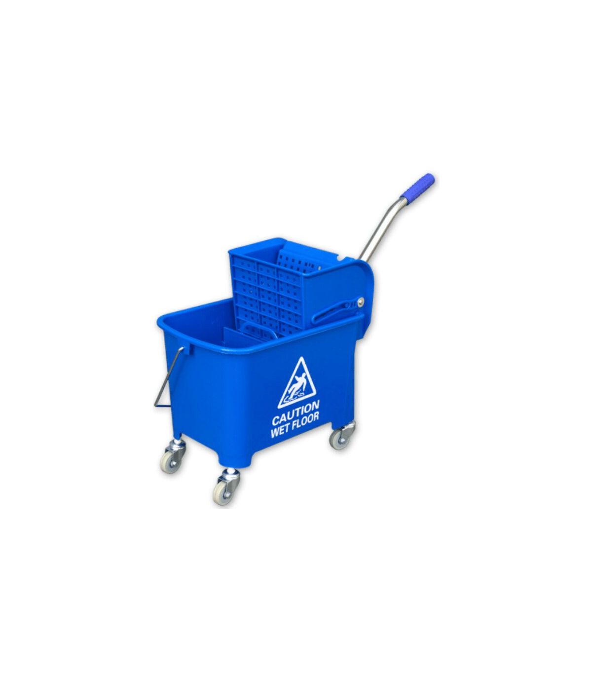 Kompaktowy, ekonomiczny i lekki wózek o łącznej pojemności 20L z wyjmowaną przegrodą rozdzielającą brudną i czystą wodę. Wózek został wykonany z dobrej jakości tworzywa ABS. Posiada dużą, uniwersalną praskę przeznaczoną do wyciskania zarówno mopów płaskich jak i tradycyjnych. Widoczny niebieski kolor oraz nadrukowany znak ostrzegający o mokrej podłodze. Świetnie sprawdzi do utrzymania czystości podłóg w przedszkolach biurach, domach czy przychodniach. Na powierzchniach nie większych niż 100m2.