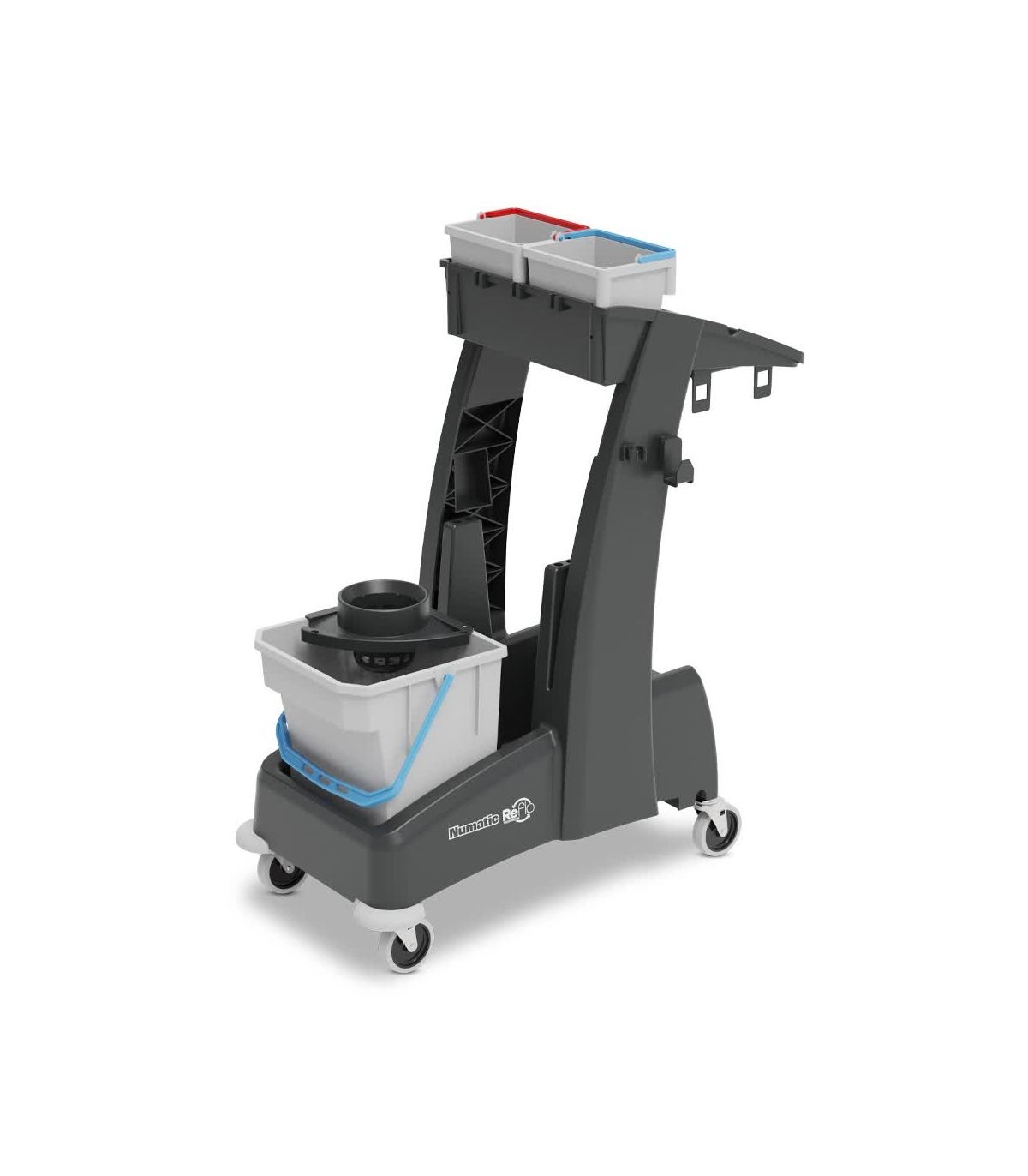 Wózek MM2 MultiMatic angielskiej marki NUMATIC przeznaczony jest do profesjonalnego mycia podłóg na małych powierzchniach np. w sklepach, szkołach, szpitalach, biurach czy domach. Wózek doskonale sprawdza się w niewielkich pomieszczeniach o ograniczonej dostępności np. w wąskich korytarzach, czy między szafkami szkolnymi. Lekka konstrukcja i niewielkie rozmiary czynią z tego modelu efektywne zaplecze sprzątające. Wózek wyposażony jest w 28-litrowe wiadro z niebieskim uchwytem, wyciskarkę do mopów sznurkowych, 2 wiadra 5 - litrowe oraz worek na śmieci 70 litrów z pokrywą. Wszystkie akcesoria są łatwe montażu i demontażu, co znacznie ułatwia pracę. Elementy wózka wykonane są z wysokiej jakości materiałów ReFlo. Charakteryzują się one znakomitą odpornością na pęknięcia czy wgniecenia.