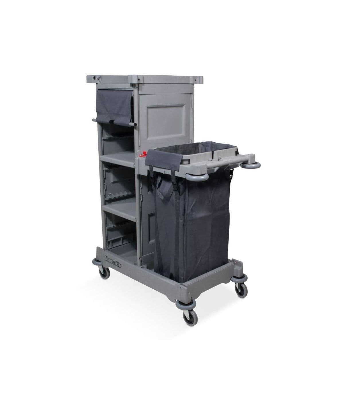 NKS 1 Nu Keeper angielskiej marki Numatic to średniej wielkości wielofunkcyjny wózek hotelowy przeznaczony do przewożenia, wymiany i segregacji bielizny hotelowej oraz wszelkiego wyposażenia hotelowego. Wyposażony w trzy wewnętrzne i jedną zewnętrzną półkę oraz jeden duży worek brezentowy o pojemności 100 litrów.