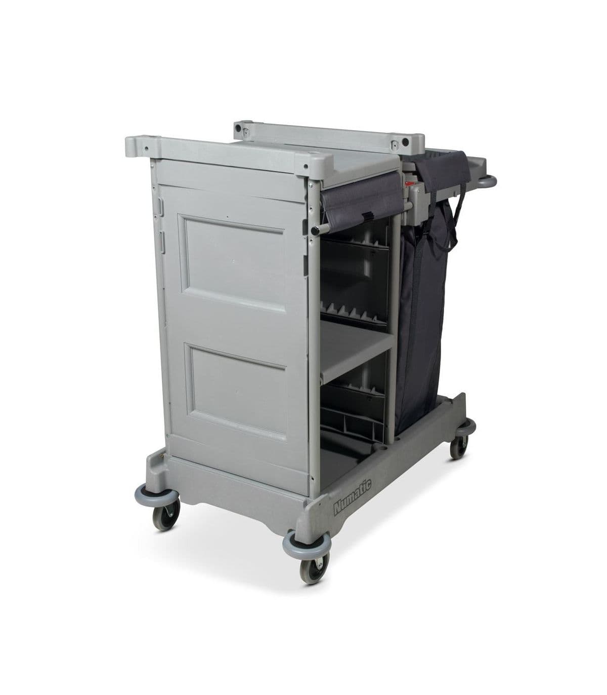 NKS 1 LLR angielskiej marki Numatic to zwrotny i kompaktowy wózek hotelowy. Przeznaczony do przewożenia i wymiany pościeli oraz wszelkiego wyposażenia pokoi hotelowych. Wyposażony w trzy duże półki oraz jeden solidny worek brezentowy o pojemności 100 litrów.